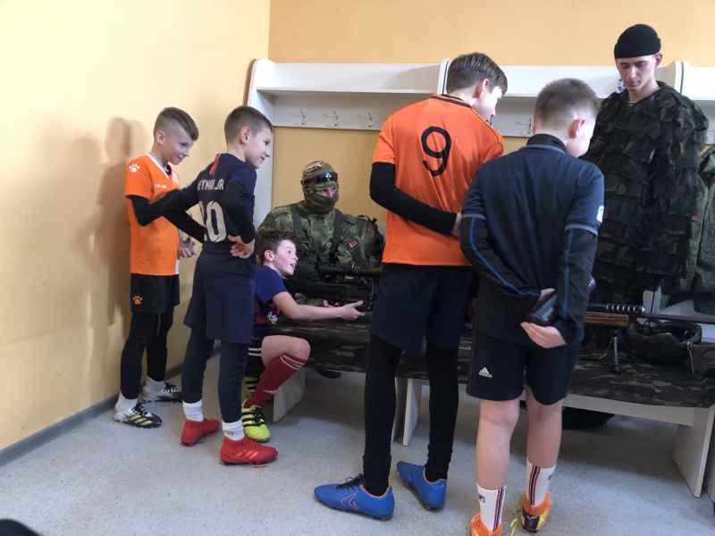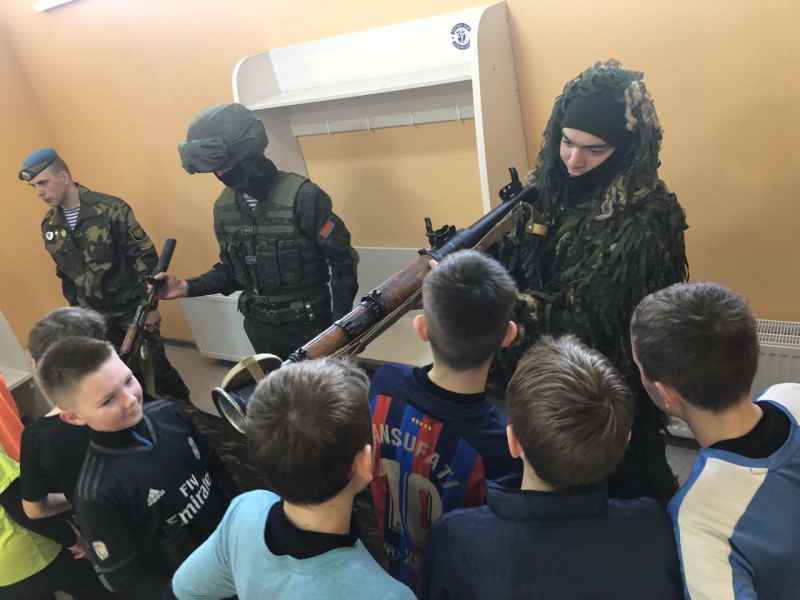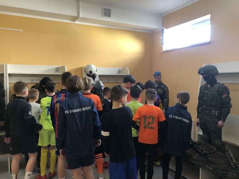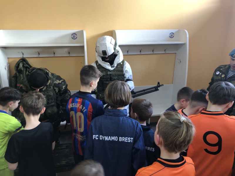 23 февраля, в День защитника Отечества, в гости к воспитанникам школы «Динамо-Брест» пришли представители 38-й отдельной гвардейской десантно-штурмовой бригады. Это мероприятие прошло в футбольном манеже и стало частью республиканского проекта «Я служу!».